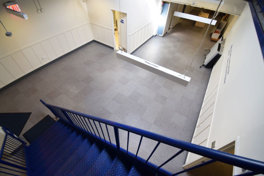 that mounts horizontally on the wall providing protection in hallways, from passing carts, equipment, wheelchairs, and stretchers. This healthcare facility reconstruction also required new floors. Milburn Flooring’s Quick Ship program allowed for easy access to carpet tiles, LVT, and VCT flooring material that was stocked and ready for immediate installation.