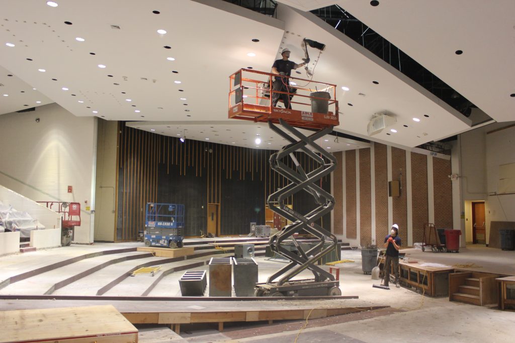 Oakdale Bohemia and Ronkonkoma Middle school auditoriums are active jobs that both RENU and Milburn are working on. With the exception of a recent floor installation by Milburn a few years ago, the auditoriums have not been updated in many years. RENU and Milburn are working simultaneously with architect John Grillo to make this job happen. The entire auditoriums were gutted in February 2021. The project was originally supposed to start in June 2021 when school let out but thanks to the great team effort and communication with the architect and the school district, they were able to start earlier beginning work after school hours. RENU is installing new AVC unit brackets on the roof, providing electrical work, carpentry, seating, stage extension, fire alarms, acoustic panels, and a high-end A/V system while Milburn will take care of the flooring consisting of carpet and epoxy. The project is expected to be done before school goes begins again in September 2021.